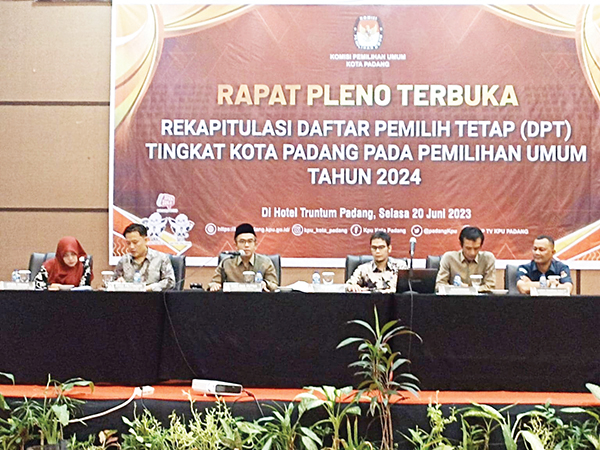 Hal tersebut disampaikan dalam Rapat Pleno penetapan DPT Kota Pa­dang yang dipimpin Ketua KPU Padang Riki Eka Putra, didampingi empat Anggota, Arianto, Atika Triana, Amid Muttaqim, dan Azwirman. Selepas pembacaan rekapitulasi DPT Pemilu 2024 ini, tidak ada keberatan dan diterima Bawaslu Padang serta perwakilan 18 partai politik peserta pemilu 2024.