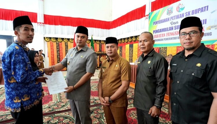 SIJUNJUNG, METRO–Bupati Sijunjung Benny Dwifa Yuswir SSTP,M.Si me­nyerahkan surat keputusan (SK) tentang pengangkatan Pegawai Pemerintah dengan Perjanjian Kerja (PPPK ), Selasa (20/6) di Balairung Lansek Manih Kantor Bupati Sijunjung.