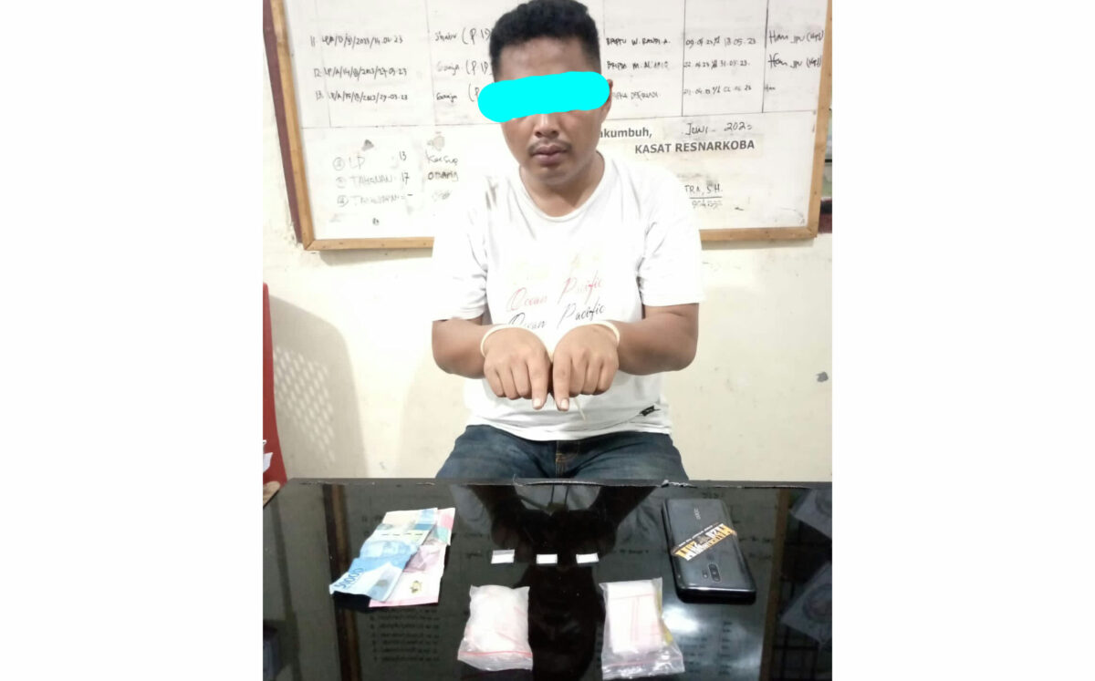 “Tim sudah lama memantau pergerakan pelaku. Setelah dipastikan pelaku memiliki dan menyimpan sabu, tim langsung melacak keberdaannya yang ternyata sedang berada di warung bakso bersama keluarganya,” ungkap Iptu Aiga Putra, Kamis (22/6).