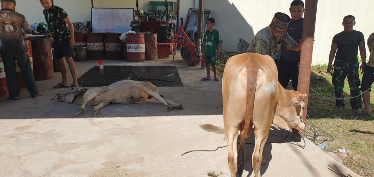 Pelaksanaan pemotongan hewan kurban sendiri dilaksanakan di halaman Makodim 0311/ Pessel. Kamis (29/6/2023).