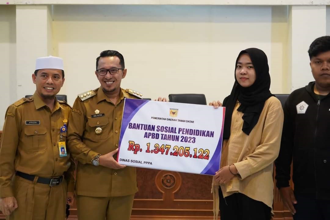 TANAHDATAR, METRO–Pemerintah Kabupaten Tanah Datar kembali salurkan bantuan pendidikan kepada calon mahasiswa dari keluarga kurang mampu, kali ini pemerintah Tanah Datar melalui Dinas Sosial salurkan bantuan senilai Rp 1.347.205.122. Bantuan diserahkan langsung Bupati Tanah Datar Eka Putra didampingi Kepala Dinas Sosial PPA Afrizon Selasa (27/6) di Islamic Centre Pagaruyung.