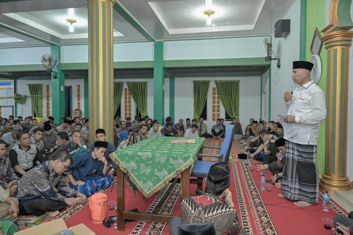 “Kita ingin memastikan, apa- apa saja permasalahan di Nagari Ganting Mudiak Utara Surantiah ini, makanya saya mengajak para Kepala OPD bermalam di sini,” tegas Mahyeldi saat bersilaturahmi dengan masyarakat Langgai di Masjid Darul Ihsan Kampung Langgai.