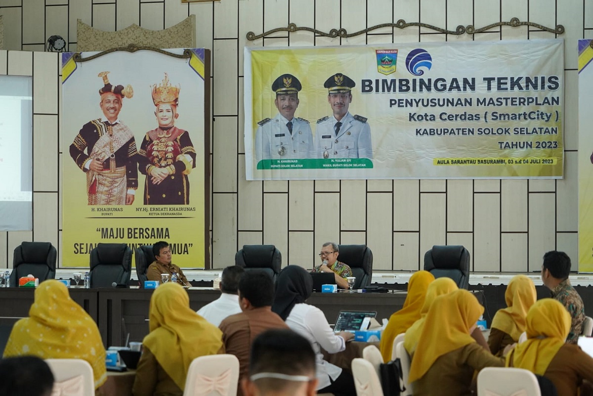 “Solok Selatan menjadi salah satu daerah dari 50 kabupaten/kota di Indonesia sebagai project Gerakan 100 Smart City di Indonesia Tahun 2023,” kata Firdaus Firman Kepala Dinas Komunikasi dan Informatika Solok Selatan dalam kegiatan Bimtek Penyusunan Kota Cerdas di Aula Sarantau Sasurambi, Kantor Bupati Solok Selatan, Senin (3/7).