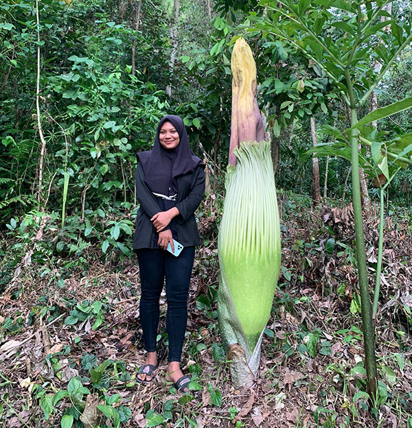 Bunga langka itu ditemukan dengan tinggi kurang lebih dua meter, dan masih dalam keadaan belum mekar sempurna. “Diperkirakan, dalam tiga atau empat hari lagi bunga tersebut akan mekar dengan sempurna,” sebutnya.