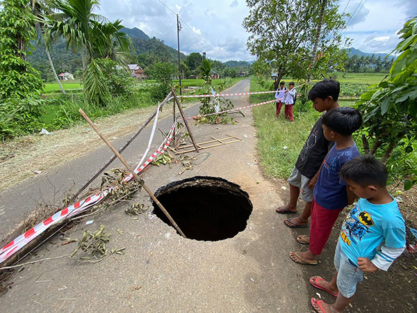 Akibat rusaknya jalan itu, pengendara yang melintas harus lebih berhati-hati. Kendaraan yang lewat juga harus bergantian, karena lobang berada hampir di tengah jalan. Dari pantauan di lokasi, amblasnya jalan itu, menjadi tontonan anak-anak sekitar.