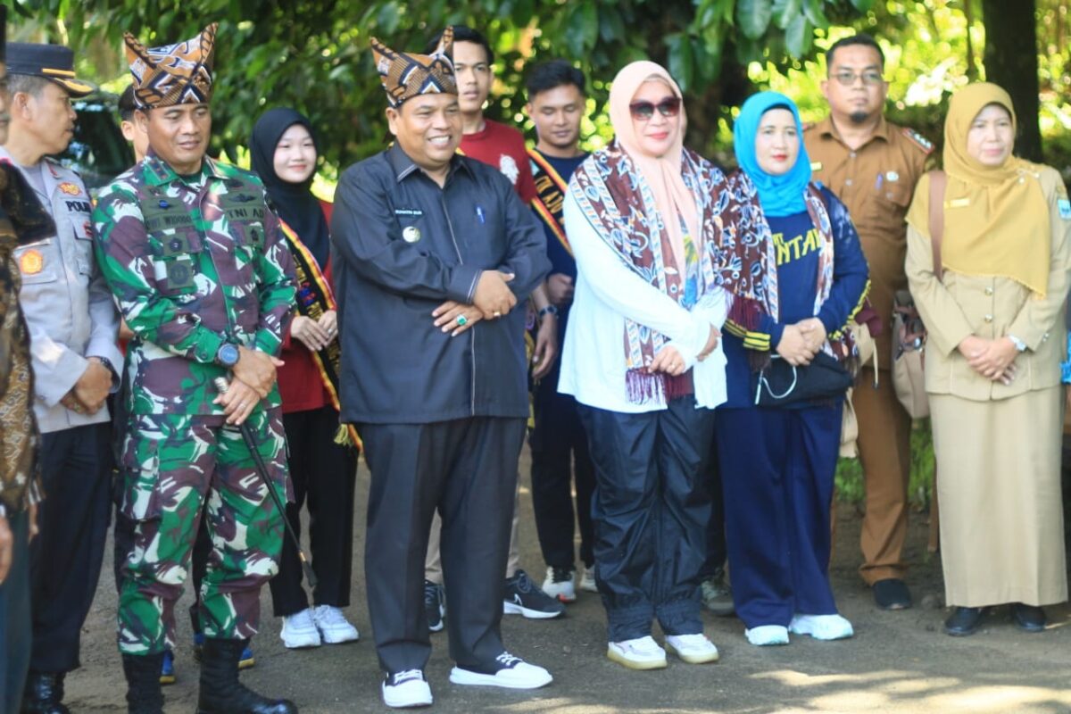 PENANAMAN POHON— Bupati Padangpariaman Suhatri Bur, Ketua TP PKK Padangpariaman Yusrita, dan rombongan menghadiri gebyar aksi dan kolaborasi remaja tahun 2023 yang diinisiasi Duta Genre Padangpariaman. Dalam aksi ini dilakukan penanaman 1000 pohon dan hiking kampanye stunting di kawasan Wisata Air Terjun Nyarai.