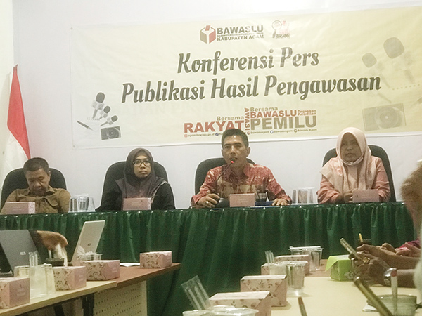 Konferensi Pers diadakan pada Rabu (13/7) di Kantor Bawaslu Kabupaten Agam, dihadiri oleh Elvys Ketua Bawaslu Kabupaten Agam, Eri Efendi, Iska Asmarni, Hendra Susilo, dan Okta Muhlia Anggota Bawaslu Agam, Yuli Zamra, Plt Kepala Sekretariat Bawaslu Agam, Mizlin Hardi Kasubbag Pengawasan Bawaslu Agam, serta jajaran sekretariat.
