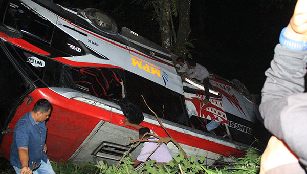 SITINJAU, METRO–Bus Antar Kota Antar Propinsi (AKAP) milik PO Mutiara Putri Mulia (MPM) terjun ke jurang di jalan lintas Padang-Solok Panorama II, kawasan Sitinjau Lauik, kelurahan Indarung, Kecamatan Lubuk Kilangan, Minggu (16/7) sekitar pukul 21.00 WIB.