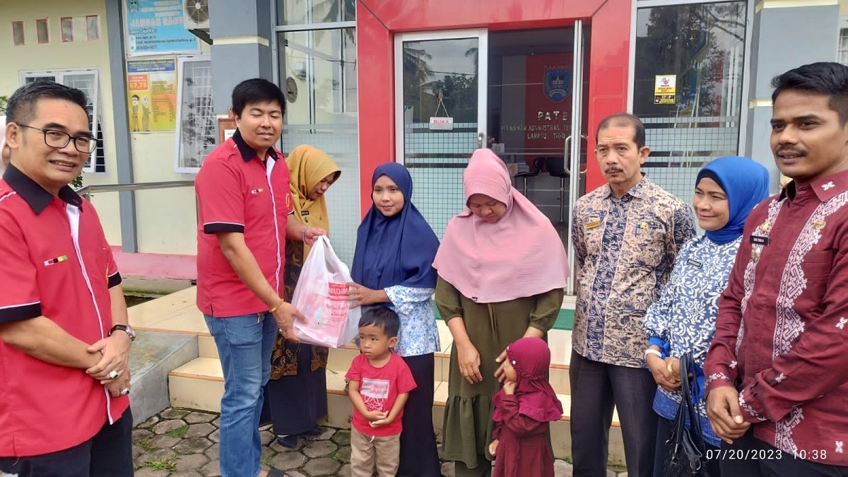 Wali Kota Payakumbuh Drs. H Rida Ananda, M.Si yang diwakili Kepala Dinas Pemberdayaan Perempuan Perlindungan Anak, Pengendalian Penduduk dan Keluarga Berencana (DP3AP2KB) Kota Payakumbuh AH Agustion yang turut didampingi Camat Lamposi Tigo Nagori Diki Engla, menyerahkan bantuan sosial yang bersumber dari HBT untuk disalurkan kepada keluarga kurang mampu yang anaknya mengalami stunting.