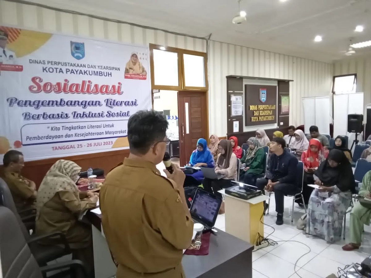 SUKARNOHATTA, METRO–Dinas Perpustakaan Dan Kearsipan (DPK) Kota Payakumbuh laksanakan Sosialisasi Pengembangan Literasi Berbasis Inklusi Sosial di Bukik Sibaluik, Selasa dan Rabu, (25-26/7) Sosialisasi yang digelar oleh Bidang Perpustakaan dibuka langsung oleh Kadis DPK Prima Yanuarita dihadiri oleh Sekretaris DPK Joni datuak Indo Marajo dan Kabid Perpustakaan Irwandi Darmawan bersama narasumber Sesmi Anggia beserta seluruh peserta dari perwakilan Taman Bacaan Masyarakat (TBM) dan masyarakat di Kelurahan Se Kota Pa­yakumbuh