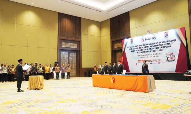 Dalam amanatnya, Rahmat Bagja meminta para terlantik untuk bekerja sesuai aturan Undang Undang dalam menghadapi tahapan Pemilu Serentak 2024 yang semakin krusial.