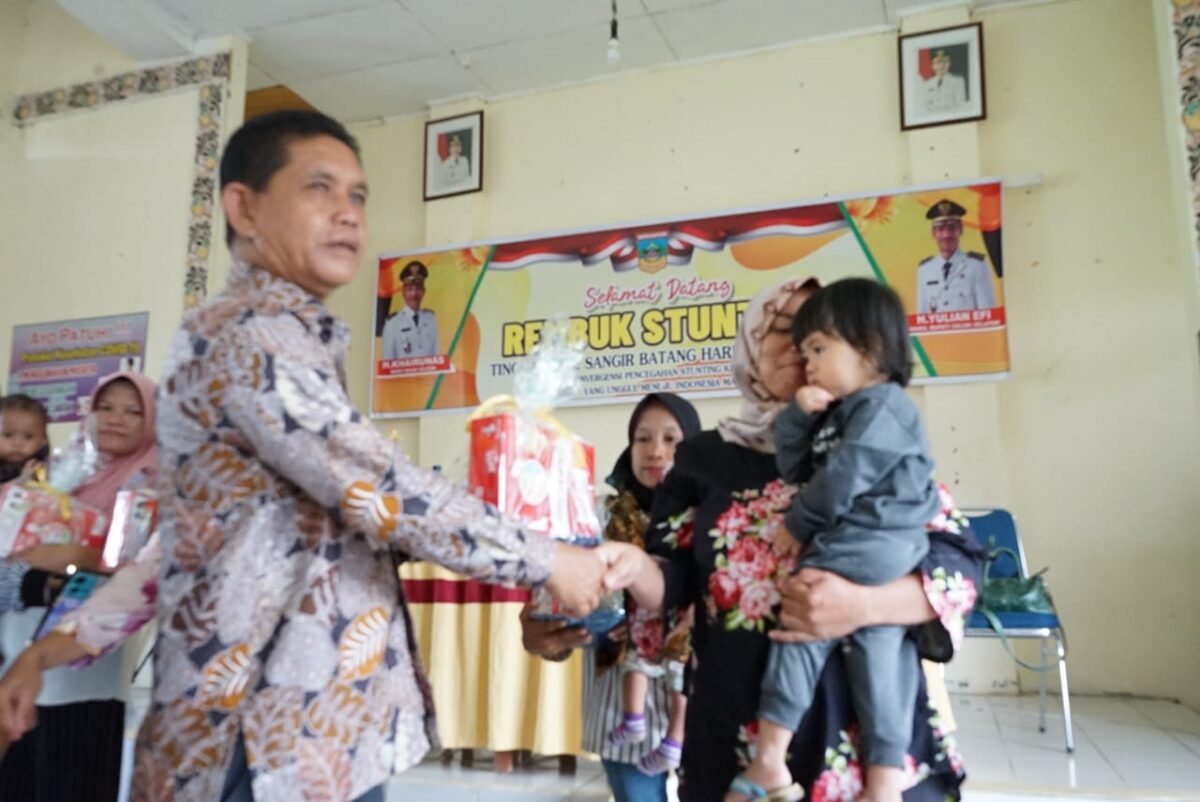 Dalam kegiatan ini juga dilakukan penandatanganan Komitmen Bersama Mendukung Penuh Upaya Percepatan, Pencegahan dan Penanggulangan Stunting di Kecamatan Sangir Batang Hari sekaligus penyerahan paket bantuan kepada anak penderita stunting di kecamatan tersebut. (ped/rel)