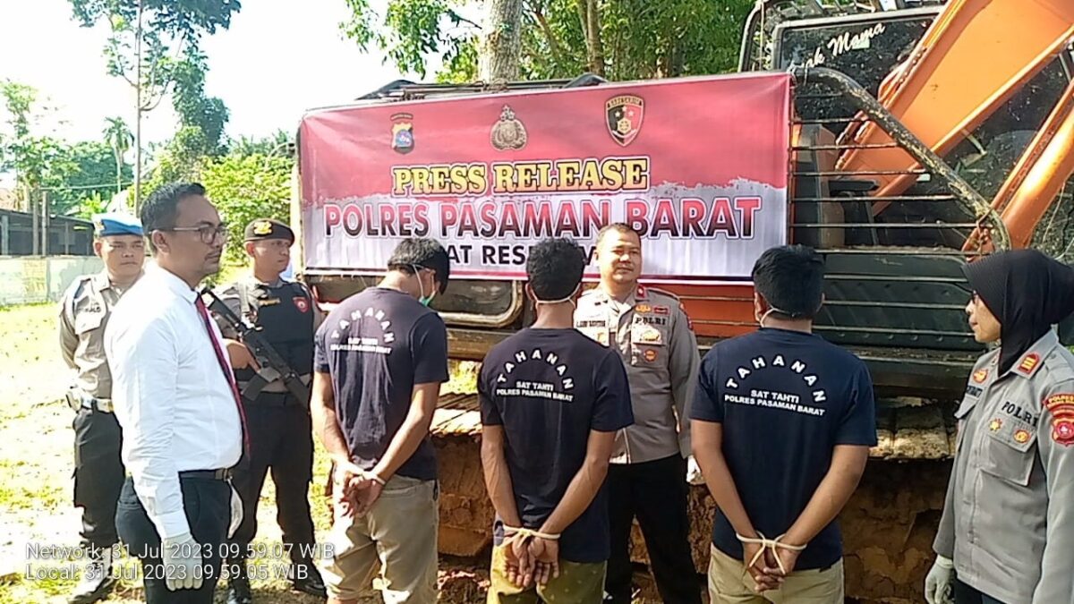 Melihat hal itu, petugas langsung menangkap ketiga pelaku yang masing-masing bernama Andi (29) yang berperan sebagai operator alat berat, Ansori (34) dan Nendi (36) berperan sebagai pekerja pendulang emas atau anak boks. Usai digerebek, ketiga pelaku bersama barang bukti dibawa ke Mapolres Pasbar untuk diproses hukum.