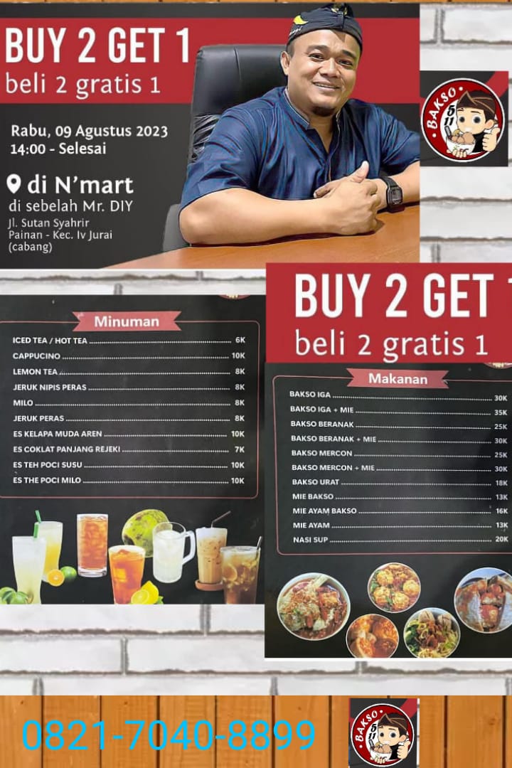 Tidak perlu jauh – jauh dan pusing lagi mencari tempat nongkrong bersama keluarga, rekan, dan teman. Di temani nikmatnya bakso 5 :11.Karena bakso 5:11Juan P.A Lu.ga.da alias Ade Teknik CNC akan menyajikan menu dan minuman. Yang membuat pengunjung ketagihan.
