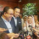 BAGIKAN BENDERA— Kapolda Sumbar membagikan bendera merah putih kepada wartawan dan masyarakat usai Jumat Curhat di Masjid Raya Sumbar.