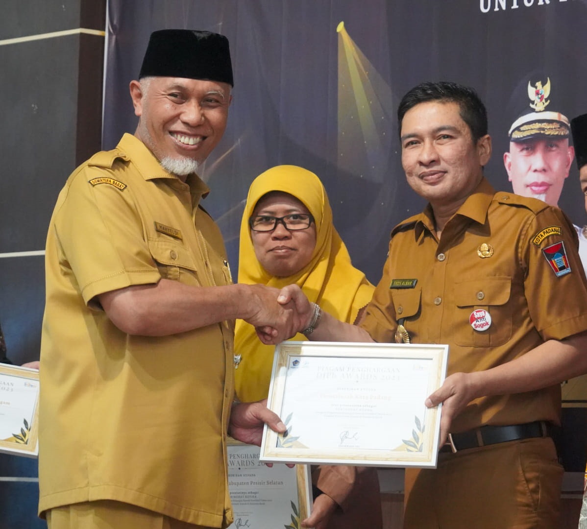 Penghargaan tersebut diterima langsung oleh Wakil Walikota (Wawako) Padang Ekos Albar dari Gubernur Sumatera Barat Mahyeldi didampingi Kepala Kantor Wilayah (Kakanwil) DJPb Provinsi Sumbar Syukriah HG dalam Award DJPb 2023, bertempat di Kantor Wilayah DJPb Provinsi Sumbar, jalan Khatib Sulaiman, Selasa (15/8/2023).