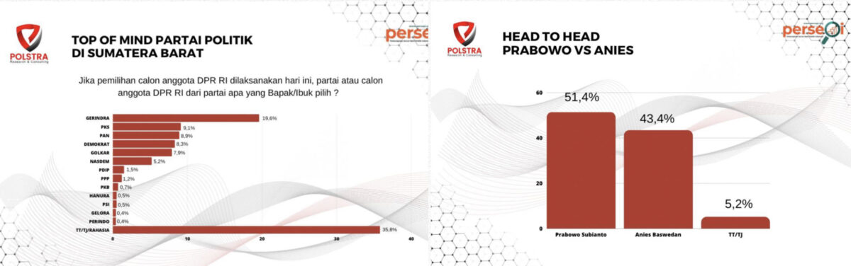 Direktur Eksekutif POLSTRA Research & Consulting Yovaldri Riki Putra menyebutkan, temuan hasil survei yang dilaksanakan oleh POLSTRA Research & Consulting bertajuk “Dinamika Elektoral Provinsi Sumatera Barat”. Ada pun survei ini dilakukan bertujuan untuk mendapatkan gambaran terkini tentang preferensi pemilih di Sumatera Barat terkait Calon Presiden dan Partai Politik menjelang Pemilu tahun 2024.