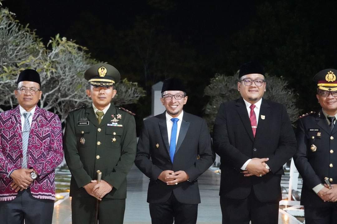 Bupati Tanah Datar Eka Putra, SE, MM. bersama Ketua DPRD Tanah Datar H. Ronny Mulyadi Dt Bungsu, dan Forkopimda, Sekda Iqbal Ramadi Payana mengikuti Upacara Apel Kehormatan dan Renungan Suci yang digelar di Taman Makam Pahlawan (TMP) Bahagia Batusangkar, Kamis dinihari (17/8/2023)