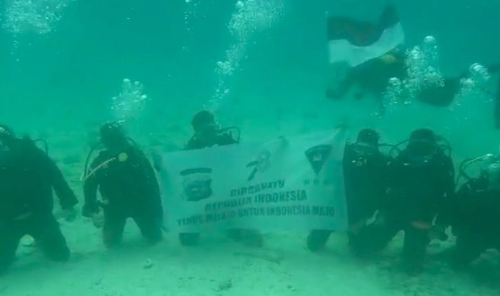 Di dalam laut berkedalaman 30 meter, bendera merah putih dikibarkan. Upacara pun berlangsung dengan khidmat selama satu jam.