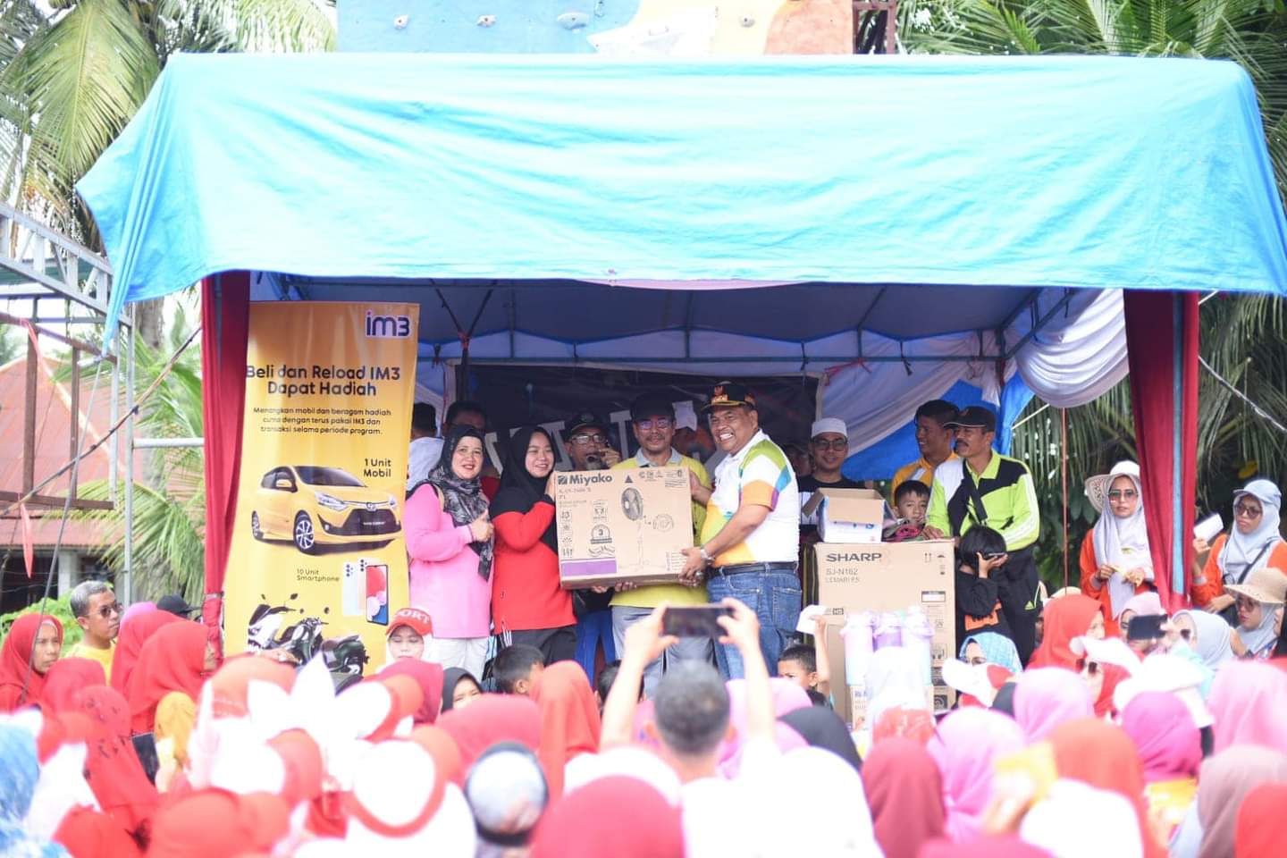 “Mereka ingin mendapatkan berbagai jenis hadiah yang terdiri dari berbagai hadiah sepada, kulkas, kipas angin dan hadiah lainnya.Kita sekarang telah menyerahkan hadiah tersebut kepada para pemenang doorprize yang dilaksanakan siap gerak jalan santai,” tandasnya.(efa)