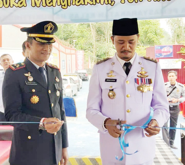 GUNTING PITA— Wako Bukittinggi bersama Kalapas Bukittinggi, Marten melakukan pengguntingan pita peresmian pusat UMKM yang berada di dalam area Lapas Bukittinggi.