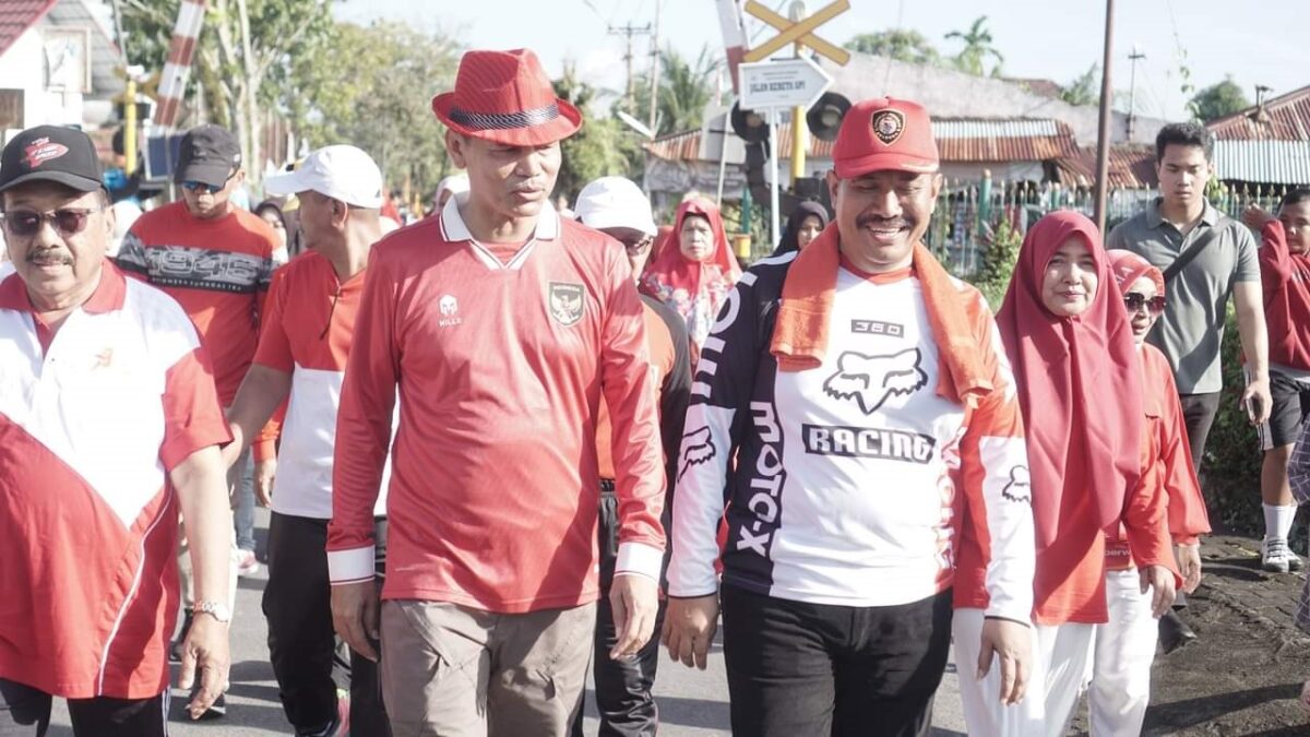 PARIAMAN, METRO–Meriahkan HUT Kemerdekaan RI ke-78 Wali Kota Pariaman Genius Umar didampingi oleh Wakil Wali Kota Pariaman Mardison Mahyuddin, kemarin, melepas acara jalan santai yang diadakan oleh beberapa Desa/Kelurahan di Kota Pariaman. Acara pertama, Genius dan Mardison lepas acara jalan santai yang diadakan oleh Karang Taruna Regeal’s Kelurahan Alai Gelombang Kecamatan Pariaman Tengah.