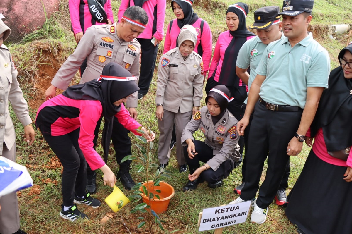 SIJUNJUNG, METRO–Polres Sijunjung melaksanakan penanaman bibit pohon, pada Rabu (23/8) di kawasan Bukik Gadang Muaro Sijunjung. Kegiatan itu dalam rangka penghijauan yang bertema “Polri Lestarikan Negeri, Melalui Penghijauan Sejak Dini” yang digelar serentak.