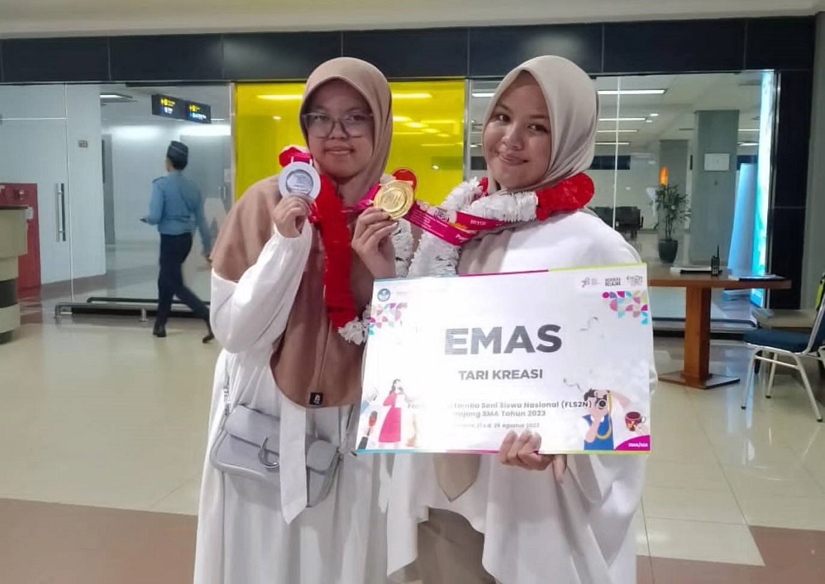 PADANG PANJANG, METRO–Dua siswi SMAN 1 Padang Panjang, ukir prestasi level nasional dalam dua ajang berbeda. Mewakili Sumatera Barat, satu emas dan satu perak berhasil dibawa pulang ke Padang Panjang. Medali emas diraih Zivara In Remazaya pada cabang Tari Festival Lomba Seni Siswa Nasional (FLS2N) 2023. Sedangkan Rafifah Ashilah Ashadi meraih medali perak pada cabang Menulis Cerpen Festival Literasi Siswa Indonesia (FELSI) 2023.