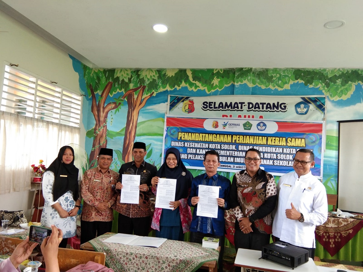 Dalam penandatanganan perjanjian kerjasama ini Kepala Dinas Kesehatan Kota Solok sebagai Pihak Pertama, Kepala Dinas Pendidikan Irsyad, M.Pd sebagai Pihak Kedua, dan Kepala KanKemenag H. Mustafa, M.A sebagai Pihak Ketiga.