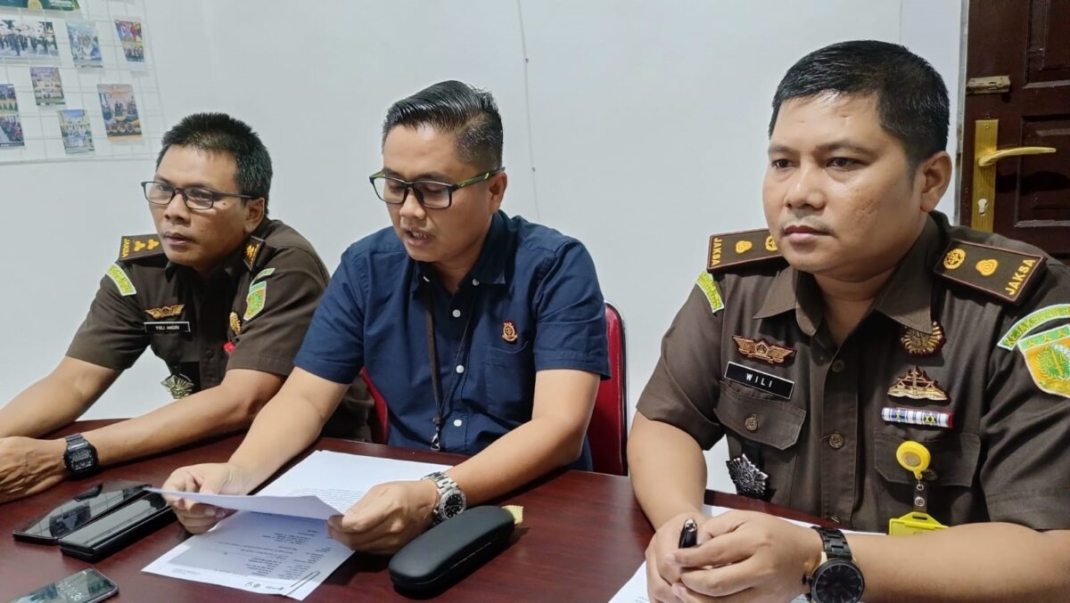KETERANGAN PERS— Kasi Intelejen Kejari Padang, Afliandi, didampingi Kasi Pidsus Yuli Andri dan ketua tim penyidik Wiliyamson memberikan keterangan pers.