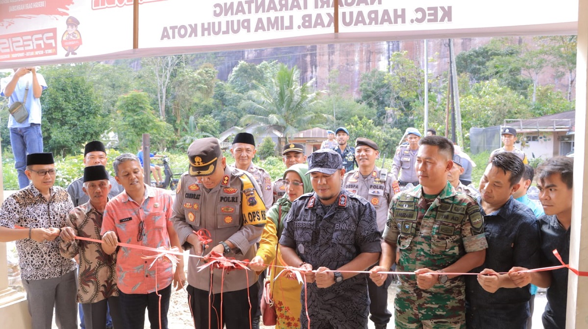 KAMOUNG BEBAS NARKOBA— Kapolres Limapuluhkota AKBP. Ricardo Condrat Yusuf, menggunting pita tanda dilaunchingnya Kampung Tangguh Bebas Narkoba di Nagari Tarantang.