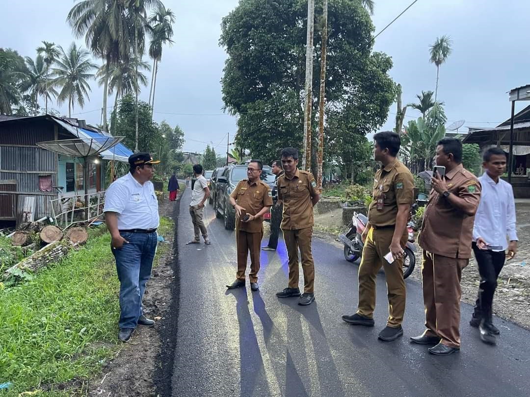 PENGASPALAN JALAN—Bupati Suhatri Bur melakukan peninjauan pengaspalan jalan lingkar Pasar Sungai Geringging yang telah selesai dilaksanakan, kemarin.