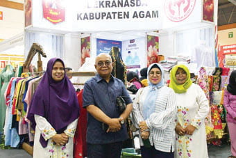 Hal itu juga tergambar pada stand Kabupaten Agam, Sekretaris Daerah Kabupaten Agam, Drs H Edi Busti MSi yang turut hadir pada kegiatan tersebut tampak antusias menyaksikan hasil kerajinan Industri Kecil Menengah (IKM) dan Usaha Mikro Kecil Menengah (UMKM) Kabupaten Agam yang ramai dikunjungi visitor dari berbagai daerah di Indonesia yang hadir. “Ini hari pertama dimulainya pameran ini, dan saya sangat senang stand Kabupaten Agam ramai pembeli,” ucapnya