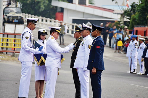 “Untuk itu saya mengucapkan terima kasih kepada seluruh prajurit TNI atas dedikasi, loyalitas dan profesionalisme yang telah ditunjukkan selama ini,” ujar Laksamana Pertama TNI Benny Febri, M.M,M.Tr. Opsla, Inspektur Upacara pada HUT TNI ke 78 di kawasan Danau Cimpago, Pantai Padang, saat membacakan amanat Panglima TNI Laksamana TNI Yudo Margono, Kamis (5/10).