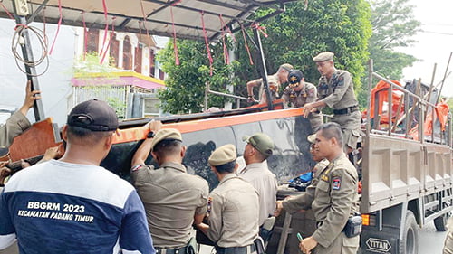 Pantauan di lapangan, terlihat petugas Satpol PP dibantu dengan BKO Kecamatan Padang Timur, menyita barang milik PKL tersebut dengan mengangkat ke atas truk, dan selanjutnya dibawa ke Mako Satpol PP Padang.