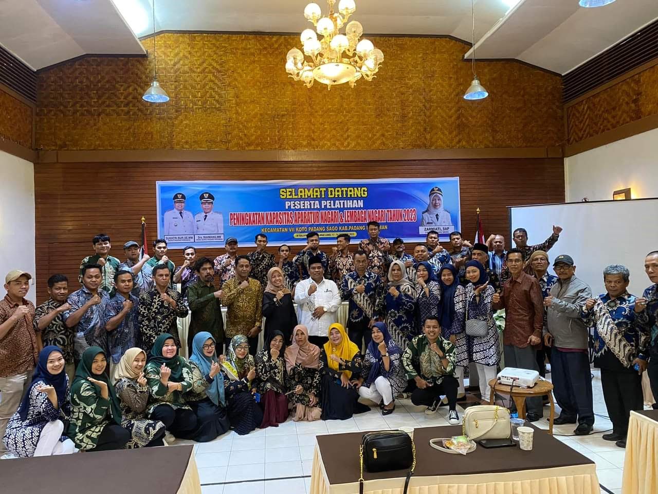 FOTO BERSAMA—Bupati Padangpariaman Suhatri Bur foto bersama perangkat nagari usai bimtek.