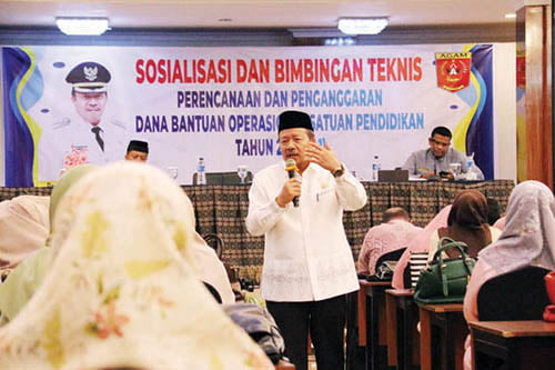 LB.BASUNG, METRO–Pemerintah Kabupaten Agam melalui Dinas Pendidikan dan Kebudayaan selenggarakan sosialisasi dan bimbingan teknis perencanaan dan penganggaran Dana Bantuan Operasional Satuan Pendidikan (BOSP)Tahun 2024, Jumat (20/10).
