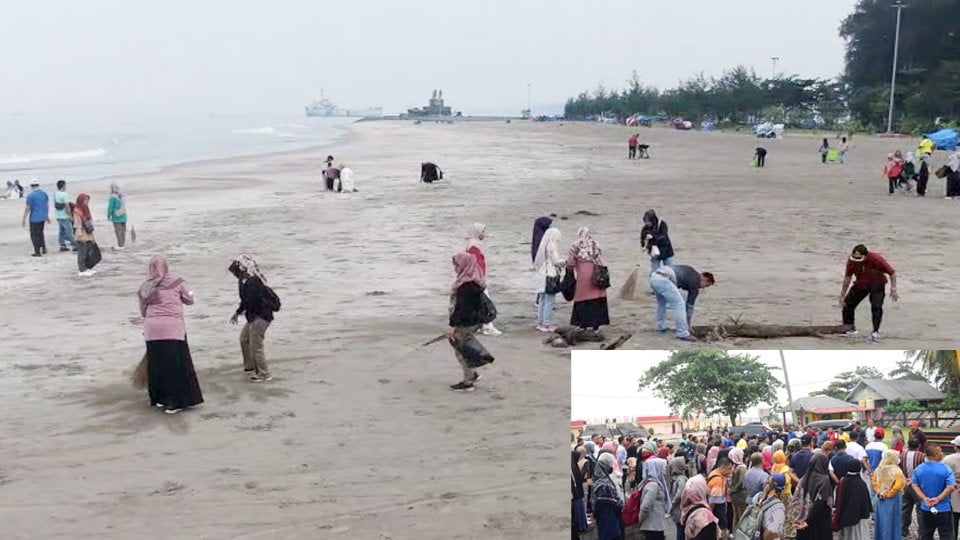 Gerakan satu jam menyapu ini bukan hanya menyapu di destinasi wisata saja, tetapi juga membersihkan sampah-sampah yang ada dikawasan Pantai Gandoriah, baik yang ada di pantai, dan yang ada dibebatuan anjungan Pantai Gandoriah. (efa)