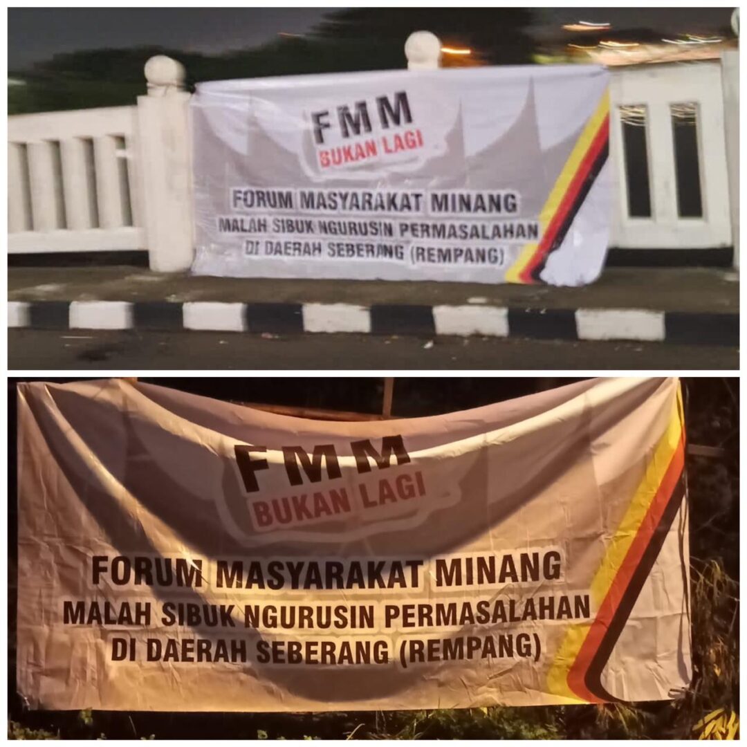Pasalnya, spanduk itu berisi pengumuman yang bertuliskan “FMM Bukan Lagi Forum Masyarakat Minang Malah Sibuk Mengurusi Permasalahan Di Seberang (Rempang)”. Namun, tidak diketahui siapa yang memasang spanduk tersebut.