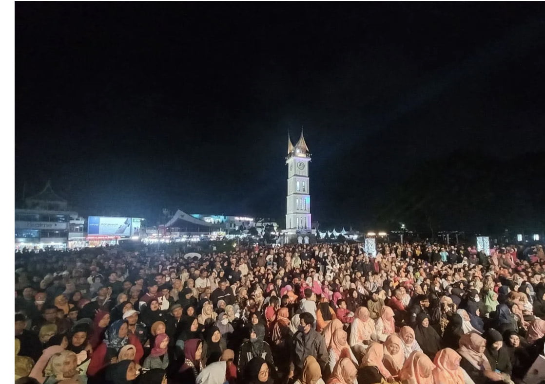 Anies memberikan sambutan untuk selanjutnya langsung memimpin doa dan shalawat untuk Palestina yang diamini ribuan warga yang sudah memadati Taman Jam Gadang sejak sore harinya.