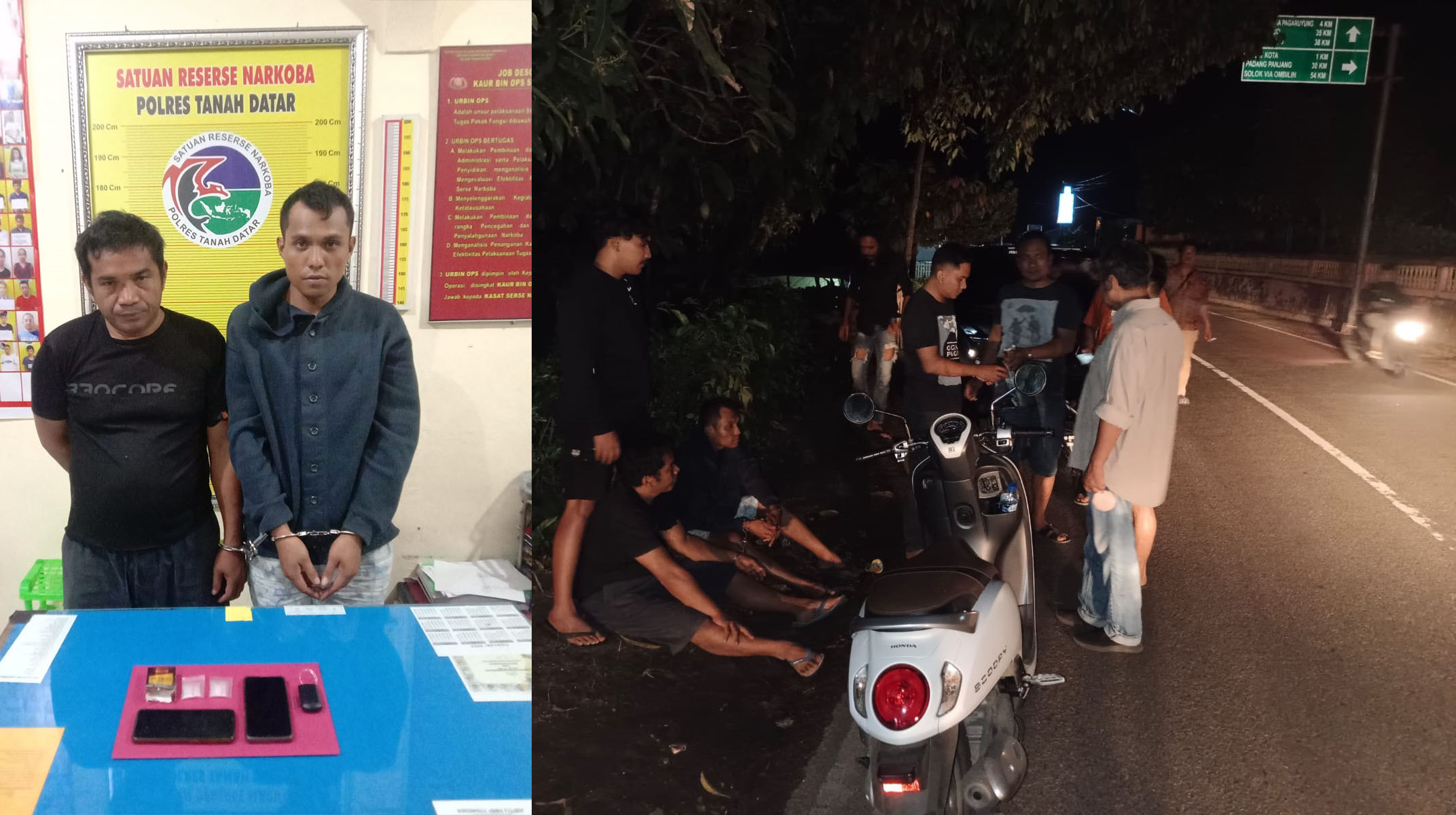 NARKOBA— Pengedar dan pemakai sabu ditangkap Tim Tarantula Polres Tanahdatar di pinggir jalan Kecamatan V Kaum.