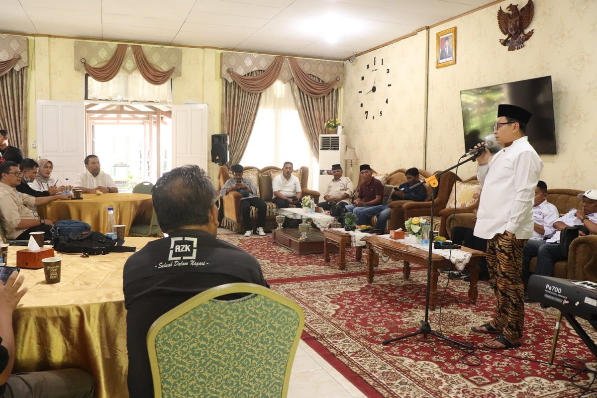 SAMBUTAN—Pj. Wali Kota Payakumbuh saat berikan sambutan pada silaturahmi dengan puluhan jurnalis Luak Limopuluah yang tergabung dalam berbagai organisai pers di Pendopo Rumah Dinas Wali Kota Payakumbuh.