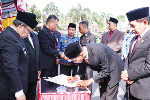 Hal tersebut dilakukan dengan penandatanganan Naskah Perjanjian Hibah Daerah (NPHD) Pendanaan Kegiatan Pemilukada di Kabupaten Agam 2024, pasca upacara Hari Pahlawan, di Kantor Bupati Agam, Jumat (10/11)