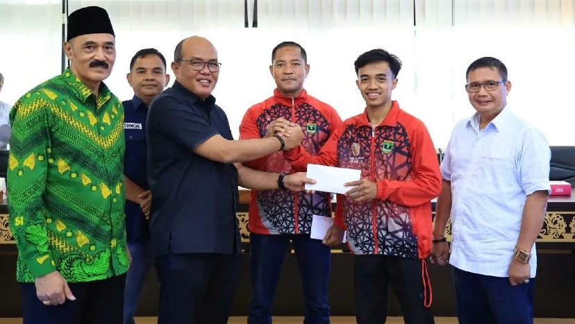PADANG, METRO–Ketua Dewan Perwakilan Rakyat Daerah (DPRD)  Sumbar, Supardi memberikan motivasi serta reward berupa bonus kepada atlet pencak silat berprestasi. Senin (13/11).