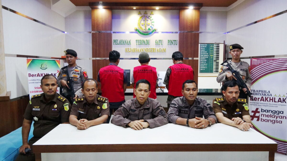AGAM,METRO–Kejaksaan Negeri (Kejari) Agam resmi menetapkan tiga orang sebagai tersangka dalam kasus dugaan tindak pidana korupsi pada Dinas Pariwisata Pemuda dan Olahraga (Disparpora) Kabupaten Agam yang menimbulkan kerugian negara Rp 553 juta.