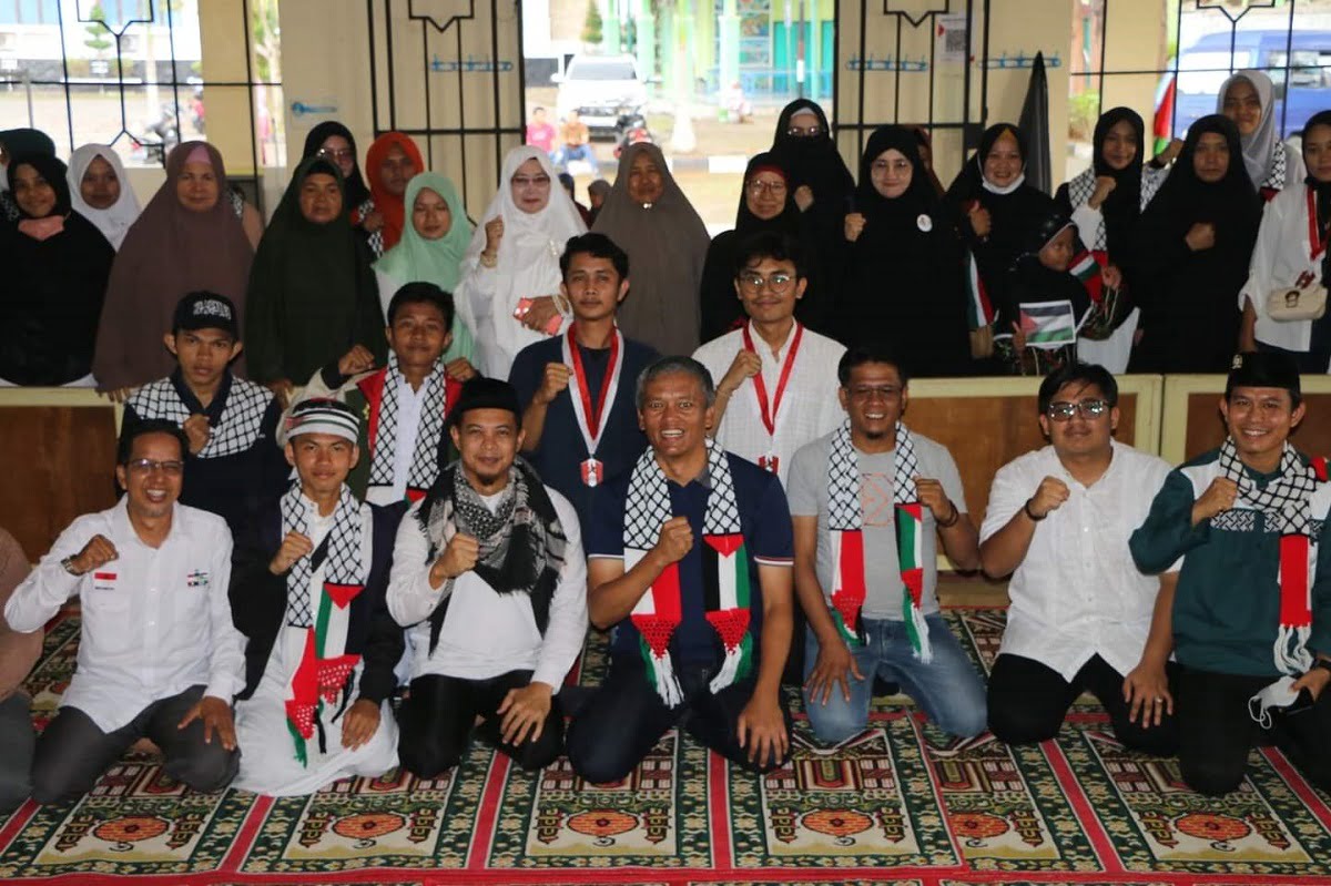 SOLIDARITAS UNTUK PALESTINA— Pj Wali Kota Pariaman Roberia, berbaur bersama pendukung aksi solidaritas Pariaman bela Palestina.