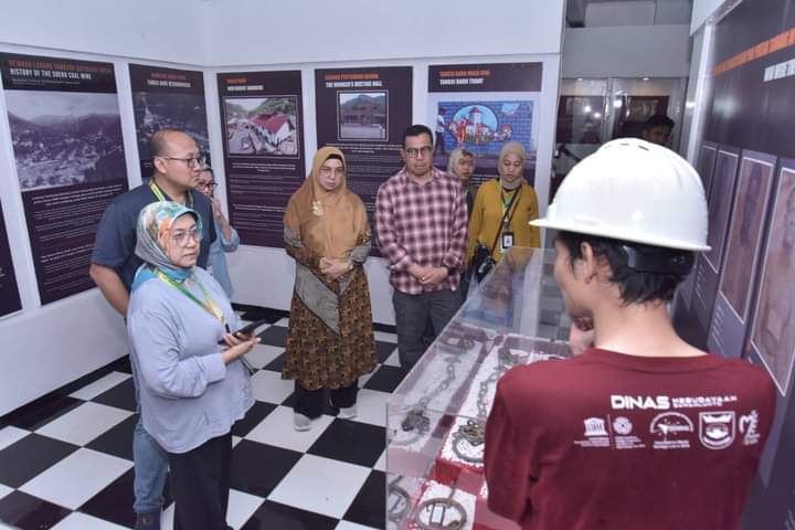 SAWAHLUNTO, METRO–Deputi Bidang Kemaritiman dan Sumber Daya Alam Bappenas Dr.Vivi Yulaswati, MSc beserta beberapa jajarannya diajak Penjabat (Pj) Wali Kota Sawahlunto Dr. Zefnihan, AP, MSi, mengunjungi destinasi wisata kota tua (Heritage) di Kota Sawahlunto yakni Gedung Info Box dan lubang tambah Mbah Soero, pada Minggu (19/11).
