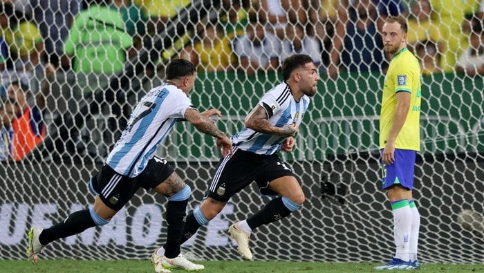TIMNAS Argentina menumbangkan rival abadinya Timnas Brasil di kandang lawan. Tim Tango menang 1-0 lewat gol Nicolas Otamendi.