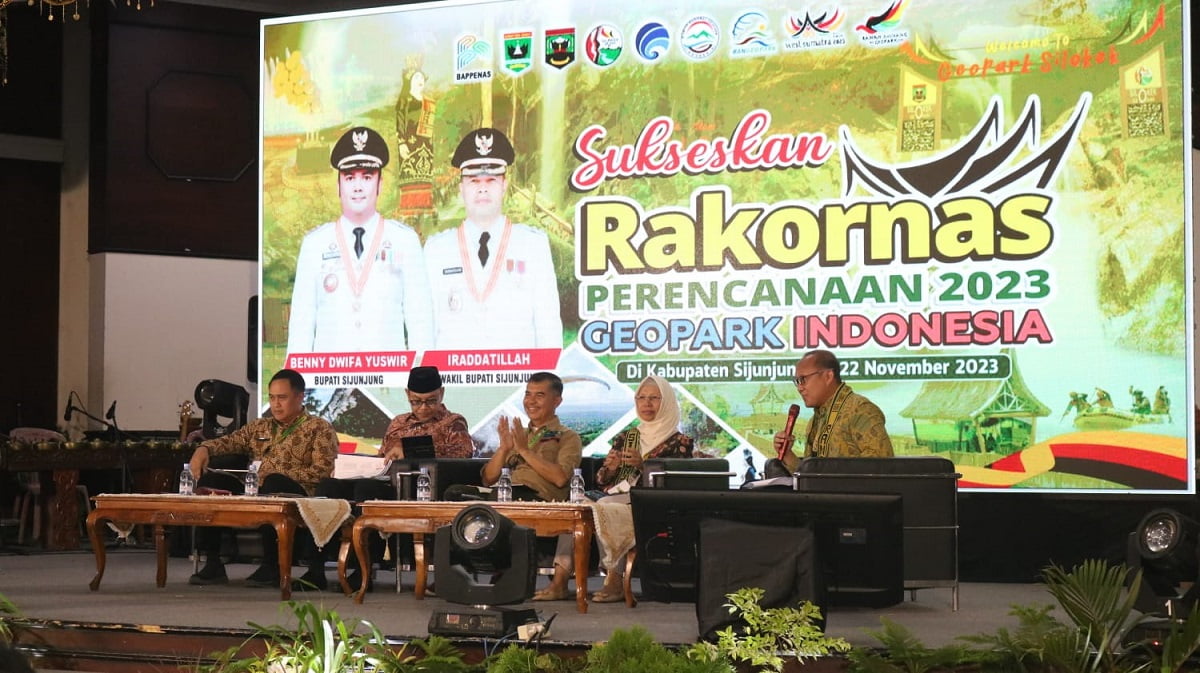 “Kita melihat keseriusan pemerintah Kabupaten Sijunjung yang telah memasukkan geopark sebagai konsep pembangunan daerah, dan dirumuskan dalam rencana kerja pembangunan jangka menengah, hal ini yang menjadi salah satu poin penting dari Bappenas dari sisi Perencanaan pembangunan Geopark dan sebelum dilakukan Rakornas di Kabupaten Sijunjung,” jelasnya.