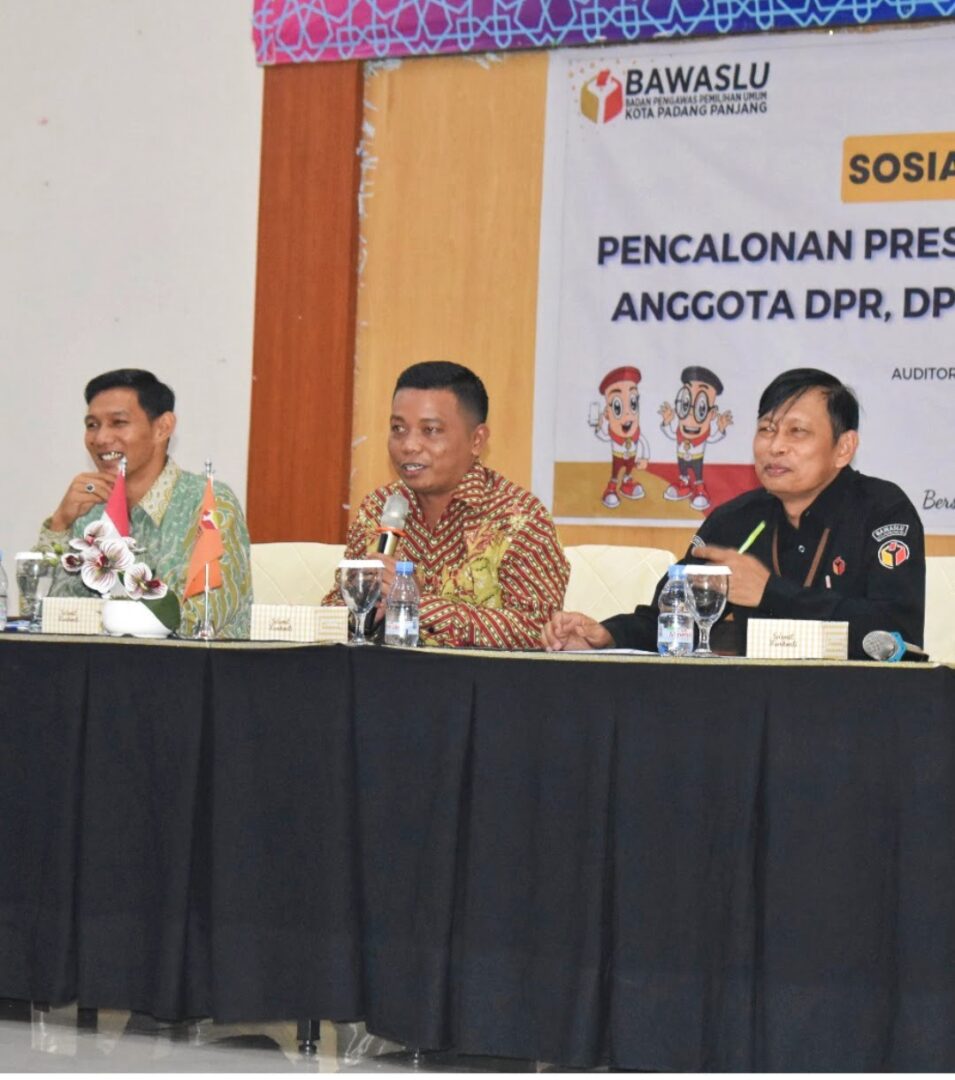 Badan Pengawas Pemilu (Bawaslu) Kota Padang Panjang menggelar sosialisasi tahapan kampanye Pemilu 2024, Jumat (10/11) di Hotel Rangkayo Basa, Silaing Bawah.Kegiatan ini diikuti beberapa instansi terkait serta partai politik (parpol) peserta pemilu di Kota Padangpanjang